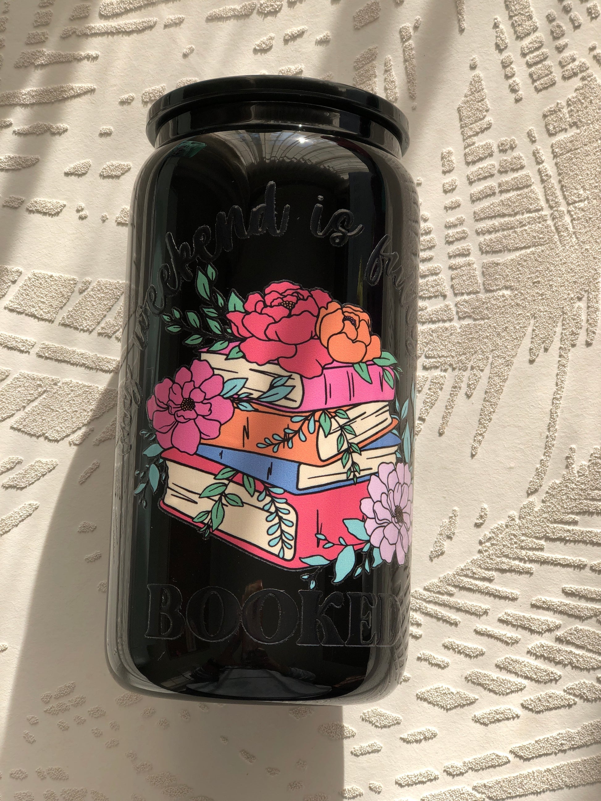 UVDTF Glass Can with My Weekend is fully Booked Design. Choose from 6 Glass Can Colour Options.