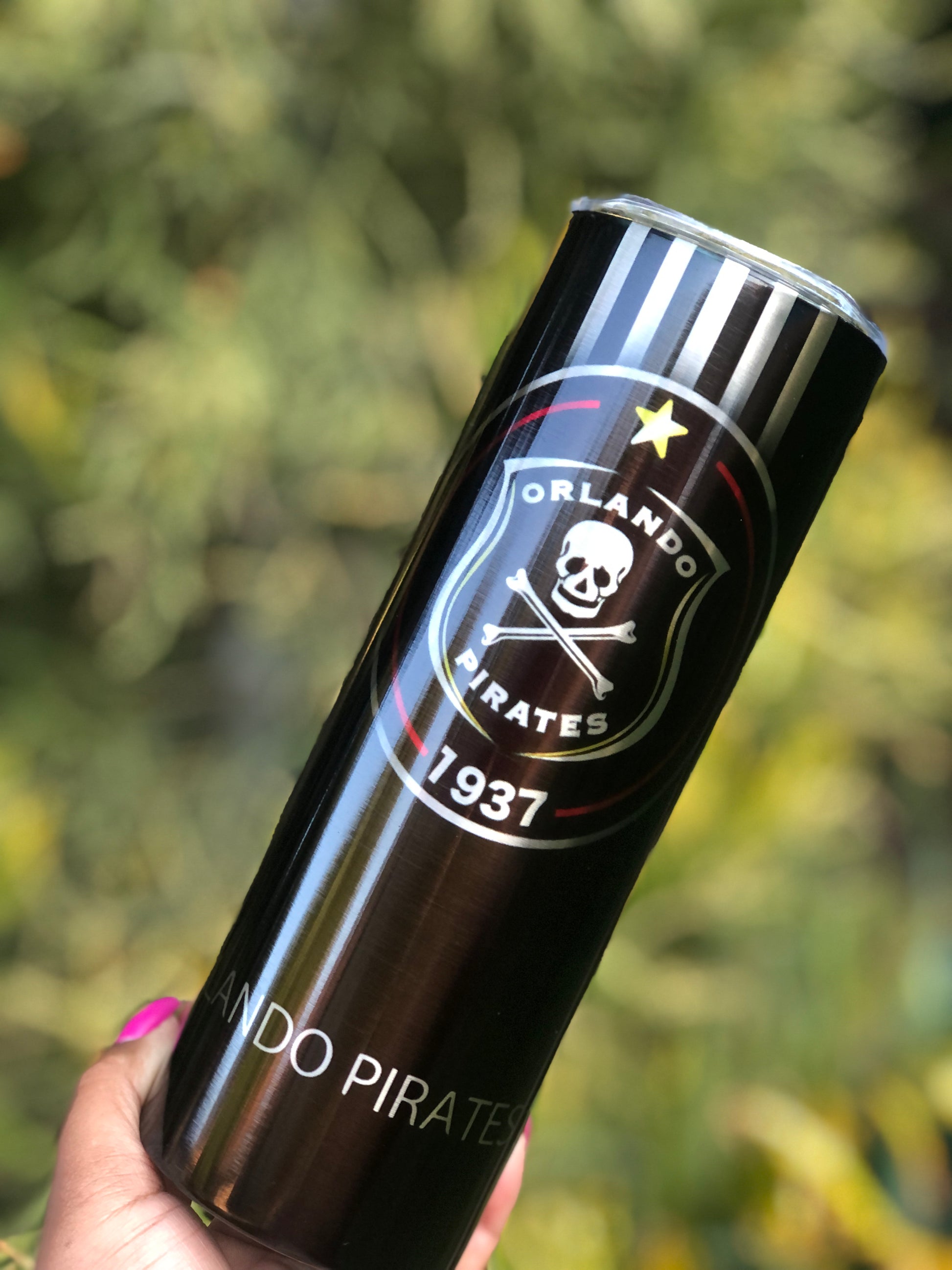 20oz Silver Skinny Tumbler - Orlando Pirates Black