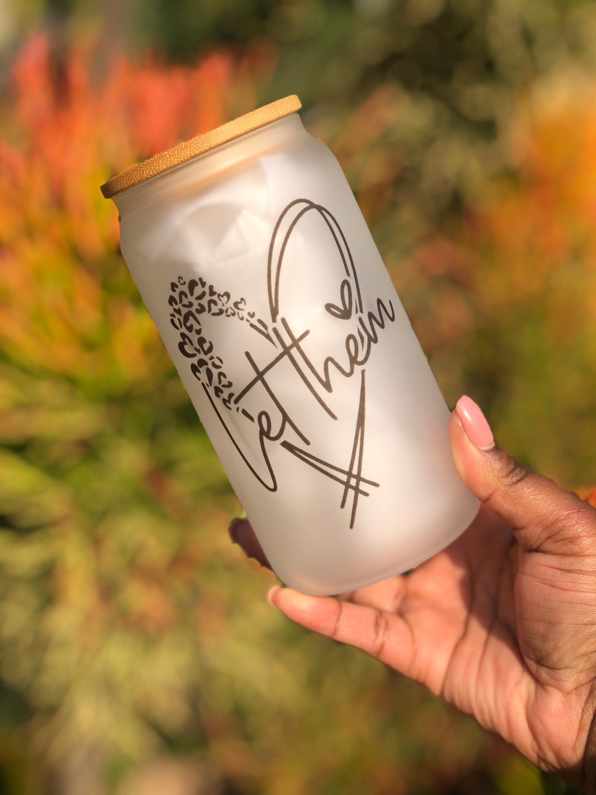 Sublimated Glass Can with Let Them Design. Choose between a Simple Let Them Design or a Heart Let Them Design. The other side is the same for both designs.